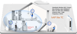 اکسس پوینت میکروتیک RB941-2nD-TC که با نام اختصاری hAP lite TC شناخته می شود به معنی Home Access Point (اکسس پوینت مناسب خانه و آپارتمان و محیط های کوچک) می باشد، از دو بخش آنتن و روتربرد تشکیل شده است. این روتر وایرلس با طراحی مدرن به عنوان یک گیرنده و فرستنده پر قدرت و کارآمد در محیط های داخلی مورد استفاده قرار میگیرد. روتربرد hAP lite TC هم به عنوان یک فرستنده در محدوده فرکانس 2.4 گیگاهرتز و هم به عنوان یک روتر 4 پورت مورد استفاده قرار می گیرد.