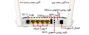 اگر به قسمت پشت مودم-روتر دی لینک 2750U نگاه کنید، از سمت راست اولین چیزی که به چشم میخورد، آنتن 5 دسیبلی سمت چپ دستگاه است. در کنار آنتن میتوانید محل اتصال آداپتور برق را بیابید که وظیفهی تامین برق دستگاه را برعهده دارد. در کنار شیار اتصال آداپتور، دکمهی روشن و خاموشکردن محصول قرار گرفته و در کنار آن نیز دو دکمهی دیگر قرار دارند که دکمهی پایینی برای روشن و خاموشکردن اتصال بیسیم (Wi-Fi) است. در مودمهای قدیمی هنگامیکه میخواستید به هر دلیلی شبکهی بیسیم مودم خود را قطع کنید، باید دستگاه را خاموش میکردید؛ اما الان با استفاده از این دکمه، دیگر نیازی به این کار نیست و بدون نیاز به خاموشکردن مودم میتوانید شبکهی بیسیم آن را قطع کنید. شاید این سوال پیش آید که خاموشکردن شبکهی بیسیم چه فایدهای دارد؟ اولین فایدهی این کار قطعشدن امواج در زمانی است که از اتصال بیسیم مودم استفاده نمیکنید یا مودم درون اتاق خواب شما قرار دارد و هنگام خواب نمیخواهید امواج مودم درون اتاق پخش باشد. از فواید دیگر این کار میتوان به بالابردن امنیت شبکه و صرفهجویی در مصرف برق اشاره کرد. در بالای دکمهی روشن و خاموشکردن اتصال بیسیم دکمهی WPS قرار دارد. WPS که مخفف عبارت WiFi Protected Setup بوده، یک روش استاندارد و سادهشده برای برقراری ارتباط بین مودم-روتر با دیگر دستگاههای سرویسگیرندهی بیسیم مانند لپتاپ، گوشی موبایل، تبلت، کارت شبکهی بیسیم و… است که در سال 2007 و توسط موسسهی WIFI ارائه شد. همانطور که میدانید، تمامی دستگاههای بیسیم مانند انواع مودم-روترها و اکسس پوینتهای بیسیم قابلیت رمزنگاری شبکهی بیسیم خود را دارند، به صورتی که شما با گذاشتن رمز یا فعالکردن رمزگذاری بیسیم در داخل تنظیمات مودم-روتر، امکان استفاده از مودم-روتر خود را فقط به دستگاههایی میدهید که موقع اتصال، رمز صحیح شبکه را وارد کنند. ازآنجاییکه ممکن است برای بعضی از کاربران، فعالسازی رمز و برقراری ارتباط بیسیم رمزگذاریشده، فرایند پرزحمت و پیچیدهای باشد یا برای برقراری محدودیت دسترسی در شبکههای بیسیم سردرگم شوند، باید به سراغ روشی سادهتر بروند. موسسهی WiFi یک راه بسیار ساده برای برپایی رمزنگاری در شبکههای بیسیم به وجود آورد که با نام WPS شناخته میشود، البته بعضی از کمپانیها از نامهای دیگری برای این روش استفاده میکنند. مثلا کمپانی TP-LINK در بعضی از محصولاتش این روش را QSS نامگذاری کرده است. کارایی این دکمه را با یک مثال برای شما شرح میدهیم. فرض کنید که شما یک میهمان دارید و میخواهید دستگاه میهمانتان را به شبکهی بیسیم خود متصل کنید، ولی پسورد شبکهی بیسیم شما خیلی طولانی است و حوصلهی تایپکردن آن را ندارید یا آن را فراموش کردهاید یا اصلا نمیخواهید آن را تایپ کنید. در صورتی که دستگاه میهمان شما از WPS پشتیبانی کند، میتوانید با زدن این دکمه در هر دو دستگاه، بدون نیاز به تایپکردن رمز، دستگاه میهمانتان را به شبکهی خود متصل کنید. برای اتصال دستگاههایی که دارای دکمهی WPS هستند، عمل خاصی نباید انجام داد؛ فقط کافی است روی هر دو دستگاه این دکمه را فشار دهید تا به یکدیگر متصل شوند. اما در دستگاههایی که فاقد این کلید هستند، مانند گوشیهای موبایل، تبلت، لپتاپ و… شما میتوانید با واردشدن به قسمت تنظیمات اتصال بیسیم (Wi-Fi) دستگاه موردنظر و فشردن کلید WPS روی موردم-روتر دو دستگاه را به یکدیگر متصل سازید. نوبت به چهار پورت زردرنگ شبکه میرسد که برای اتصال دستگاههای مختلف بهصورت باسیم به مودم-روتر کاربرد دارند؛ بنابراین شما میتوانید تا چهار دستگاه را بهصورت کابلی یا باسیم به این مودم-روتر متصل کنید. در کنار چهار پورت شبکه، آخرین پورت این محصول (از سمت راست) دیده میشود که یک پورت خاکستریرنگ بوده و در قسمت زیر آن عبارت DSL نوشته شده که پورت RJ-11 یا همان پورت اتصال خط تلفن است. در کنار پورت RJ-11 یعنی در آخرین قسمت سمت چپ این محصول (اگر از پشت به آن نگاه کنید)، آنتن 5 دسیبلی سمت راست مودم-روتر قرار گرفته است.